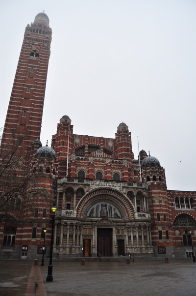 ガイドブックを見てみると、ウェストミンスター大聖堂というそうで、1903年の建築。英国カトリック教会の総本山です。何と無く、西洋の教会というよりも、トルコにあるビサンツ教会の寺院のような雰囲気だなあと思っていたら、やはりビザンティン様式の建築家、ジョン・フランシス・ベントリーの手によるものでした。