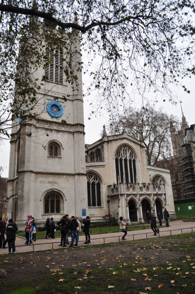 その隣にあるセント・マーガレット教会。こちらも撮影し忘れたので撮影しておきます。シンプルな外観ですが「ウェストミンスター宮殿、ウェストミンスター寺院及び聖マーガレット教会」として世界遺産に登録されています。12世紀にベネディクト会派聖職者によって建てられたのが始まりで、1486年から1523年に大幅改築。さらに北西の塔は1734年から1738年にかけ、ジョン・ジェームズにより造られました。