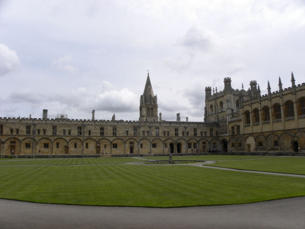 こちらはクライストチャーチ・カレッジの正門(1546年設立)。ここはオックスフォードのカレッジの中でも最大規模の敷地を保有しています。クライストチャーチはとても政治色の強いカレッジで、合計で13人もの卒業生がイギリスの首相となりました。ちなみにこのトム・タワーという塔もクリストファー・レンが手掛けたそうです。