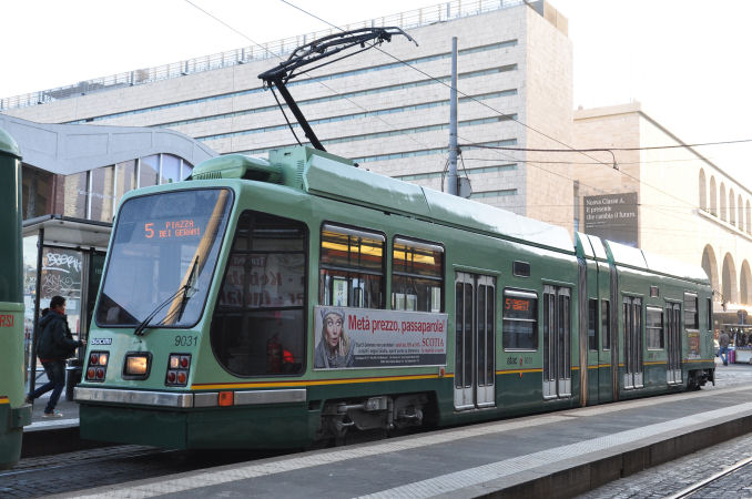 フィレンツェ行きの列車に乗るまで多少の時間があったので、ローマ・テルミニ駅前で路面電車を撮影します。