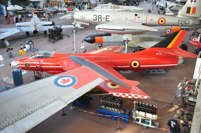 イギリス製のホーカー ハンター。尾翼がベルギー国旗になっていますね。