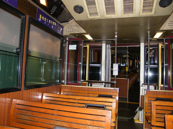 車内の様子。通常、ケーブルカーは車内が階段状になっており、車体も平行四辺形になっていますが・・・。