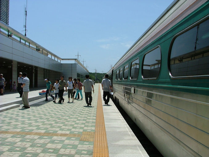こちらは都羅山駅へ行くための専用改札口がある駅舎。ここでボディチェック、手荷物検査、38度線ツアー参加者かどうかを確認されたうえで、次の列車に乗ることになります。