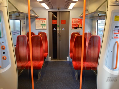 クラス450/0の普通席。大部分は2+3列配置。