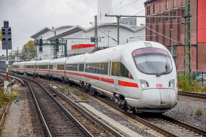 旧東ドイツ地域へ拡大するICE網だったが、高速新線建設には莫大な費用がかかるため、乗り入れ先の在来線区間を少しでも高速走行する必要があった。そこで、カーブや勾配の多い線区でスピードアップを図るべく、動力分散式、そして車体が傾斜する振り子式電車としたICEが、このICE Tで、最高速度は230km/h。TとはTilt-technologyのことで、Tilt とは傾斜機構のこと。アルミ車体を採用するなど、車体の軽量化も図られている。
